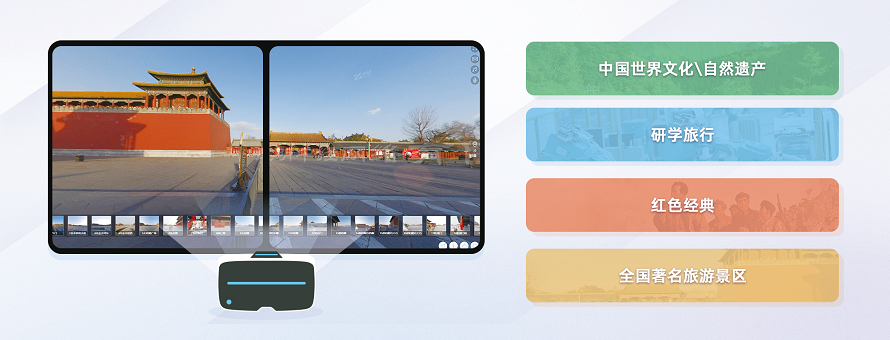 提供包括中國(guó)世界文化\自然遺產(chǎn)、研學(xué)旅行、紅色經(jīng)典、全國(guó)著名旅游景區(qū)等在內(nèi)的典型VR影像體驗(yàn)庫(kù)。體驗(yàn)庫(kù)內(nèi)容豐富、類型多樣,幫助學(xué)生梳理旅游線路及文創(chuàng)產(chǎn)品設(shè)計(jì)的共性和標(biāo)準(zhǔn),了解產(chǎn)品設(shè)計(jì)的理念和流程。